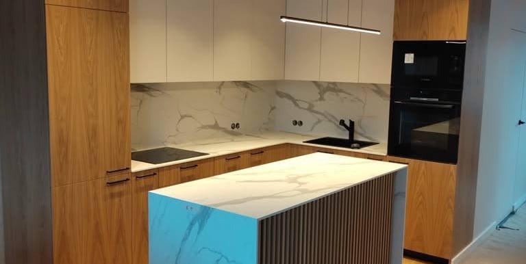 Вибір матеріалів та фурнітури преміум-класу — фасади, стільниці, ручки, приховані механізми.